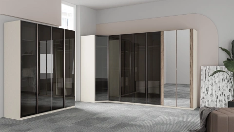 Integra köşe dolap, Integra dolapları birleştiren ve köşe alanlarını değerlendirebilmenize olanak tanıyan tasarımıyla beğeni kazanıyor. Farklı boyutlardaki Integra dolaplarla kombinleyebileceğiniz Integra köşe dolap ile çok kullanışlı ve şık bir giyinme odası tasarlayabilirsiniz.