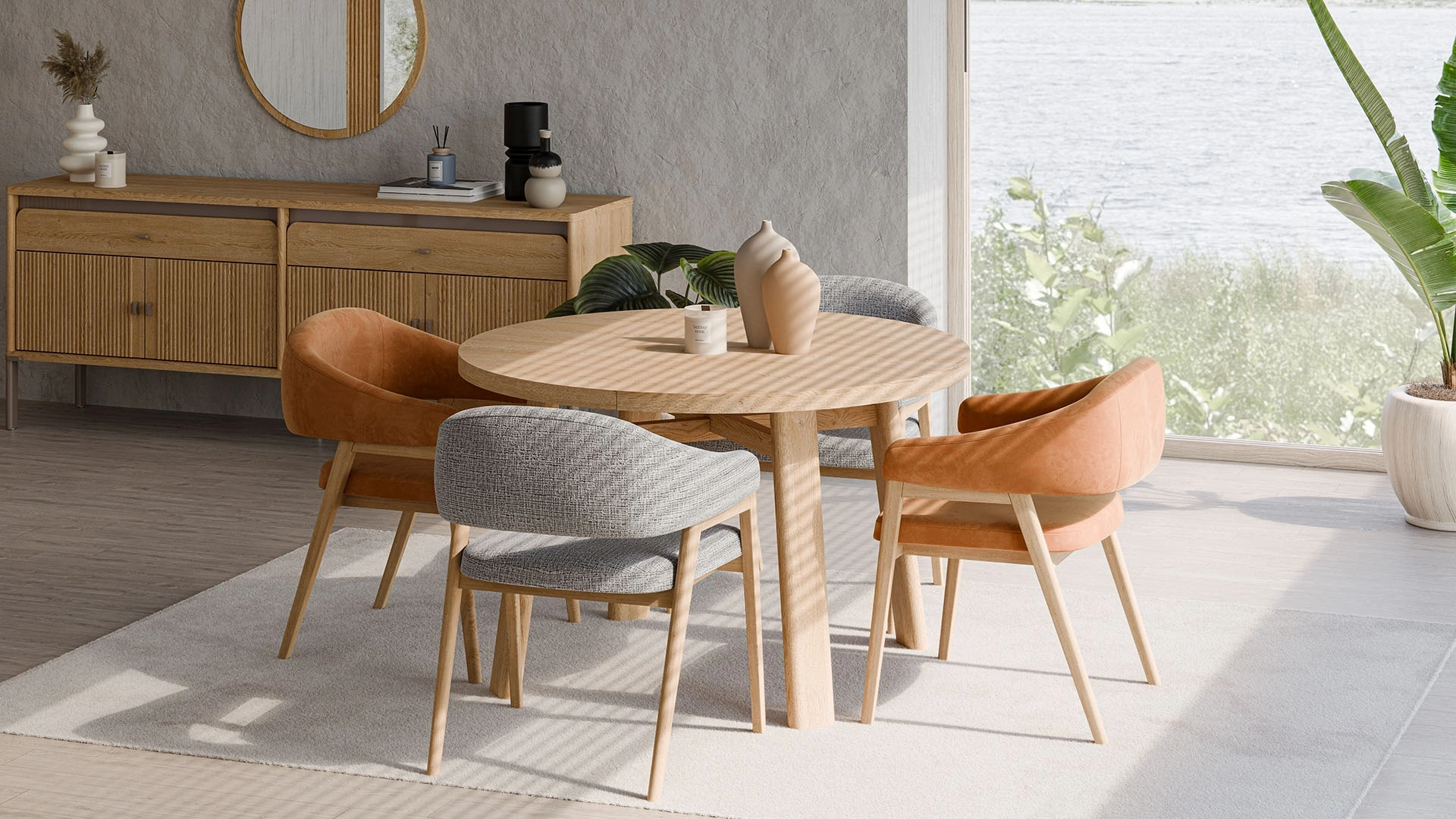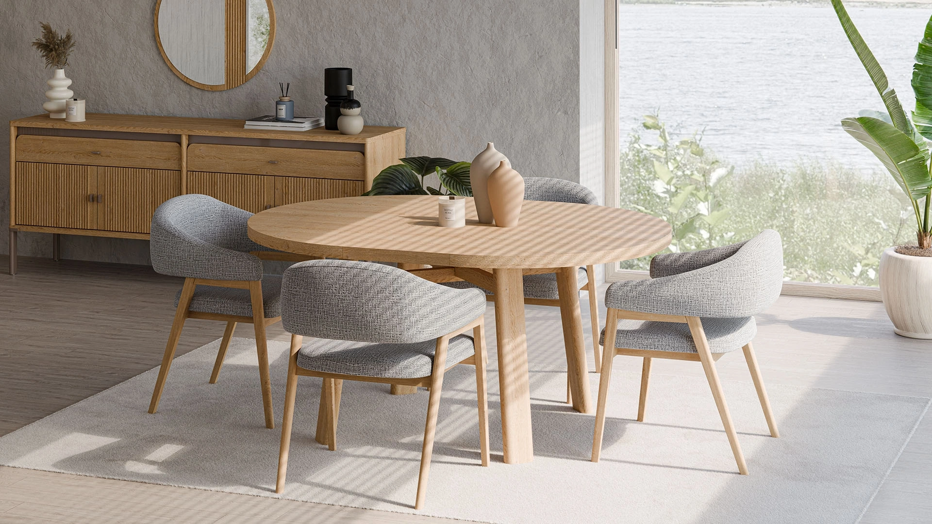 Yuvarlak hatları, zarif ayak yapısı ve açılabilir özelliğiyle kullanım kolaylığını ve şıklığı bir araya getiren masa: Kalia Açılır Yemek Masası. Kalia koleksiyonundaki bu yuvarlak hatlı masa, kapalı halde yalnızca 120 cm ölçüde. Bu sayede fazla yer kaplamıyor. Misafirleriniz geldiğinde ise açarak 160 cm olarak kullanabilirsiniz. Yuvarlak formu, aynı anda daha fazla kişinin oturmasına olanak tanıyor. Kalia Açılır Yemek Masası, doğal renk tonları sayesinde farklı sandalye modelleriyle de kullanılabiliyor.