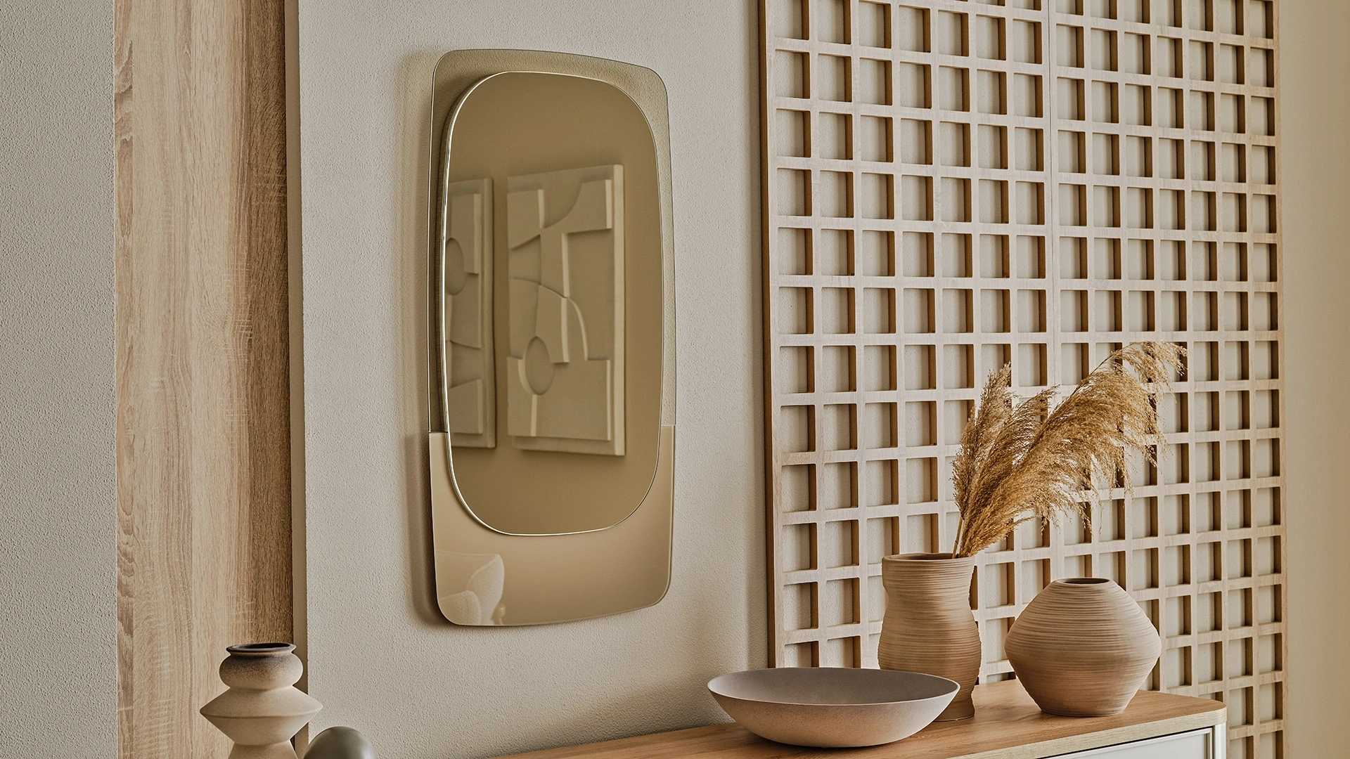 LEGNA Ayna, dikdörtgen hatları, yuvarlatılmış kenarları ve arka planındaki açık-koyu renk kontrastlarıyla dikkatleri üzerine topluyor. Konsol aynası olarak değerlendirebileceğiniz bu parça, şifonyer üzerine de kolayca uyum sağlıyor. LEGNA Ayna, dar alanlarda bile genişlik hissi yaratıyor ve hem kullanım hem de görsellik açısından ideal bir çözüm haline geliyor. Bu aynayı giyinme odası, yatak odası veya antre gibi farklı mekanlarda da kullanabilir ya da kullanımına bağlı kalarak yemek odanızda değerlendirebilirsiniz.