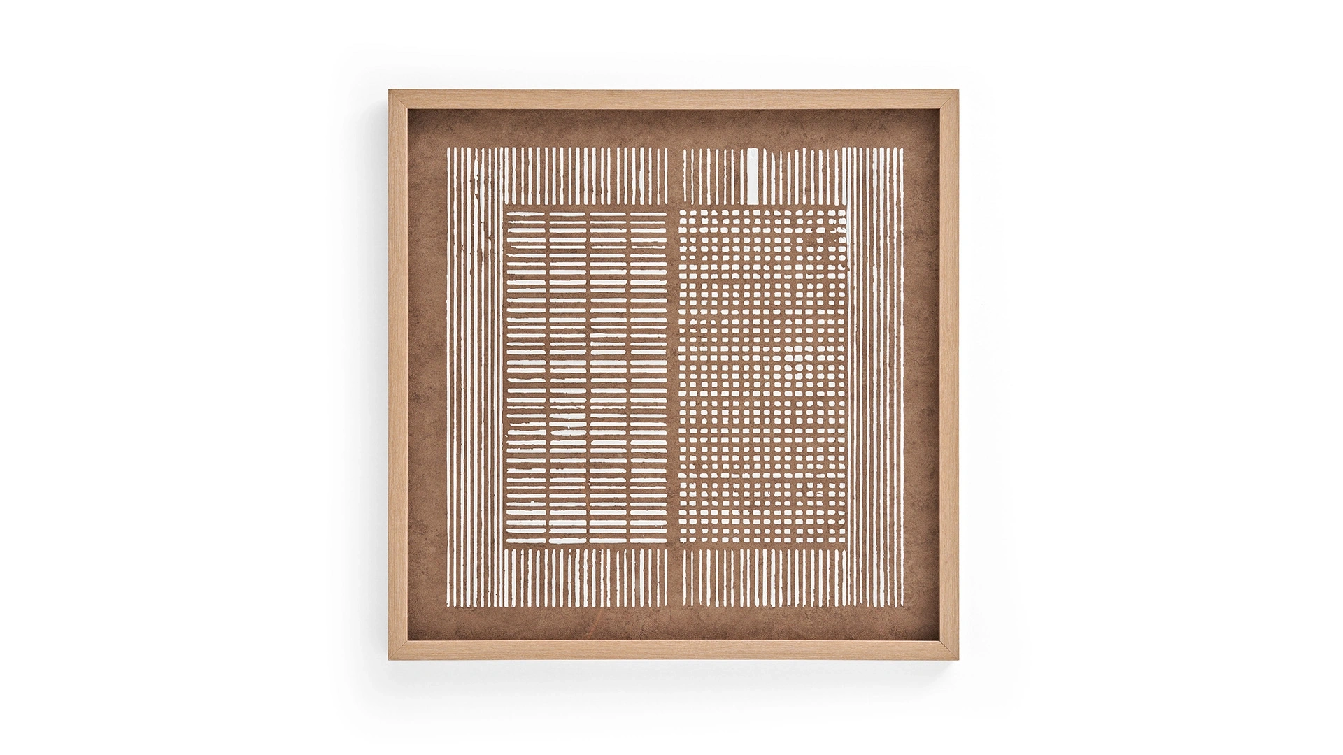 Cam baskı tekniğiyle üretilmiştir. Polistren çerçeve kullanılmaktadır.