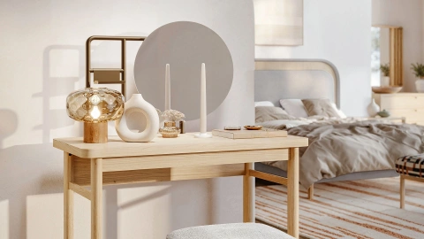 Aynasız ve aynalı makyaj masası tercih etmek tamamıyla sizin makyaj yaparken nasıl rahat ettiğinize ve dekoratif açıdan hangisinin uyumlu olduğuna bağlıdır. Üstelik aynasız makyaj masalarını farklı ayna modelleri ile de kombinlemek mümkün. Örneğin, üçlü veya ikili ayna setlerini duvara asarak makyaj masasına uyumlu ve elegant bir görünüm yakalayabilirsiniz.