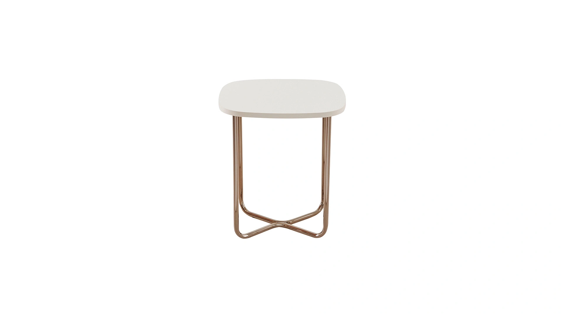 Nicole yan sehpa, yaşam alanlarınız için şık bir tamamlayıcı aksesuar oluyor. Açık renkli üst yüzeyi ve bronz metal ayakları ile hem lüks hem modern bir görünüm kazanan ürünü Nicole orta sehpa ile birlikte kombinleyebilirsiniz.