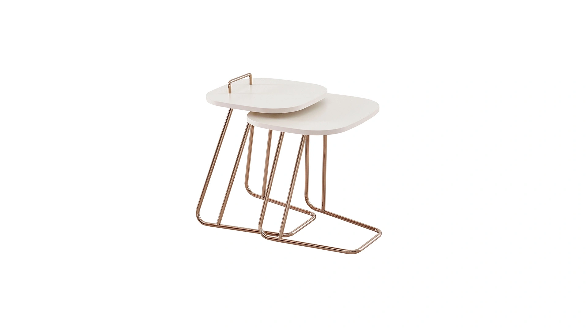 Nicole zigon sehpa, modern ve lüks görünümlü bir dekorasyon oluşturmak isteyenlerin beğenisini kazanıyor. Bronz metal ayakları ile dikkat çeken ikili zigon sehpayı Nicole koleksiyonunda yer alan diğer sehpa ve mobilyalar ile birlikte satın alarak kusursuz bir görünüm oluşturabilirsiniz.