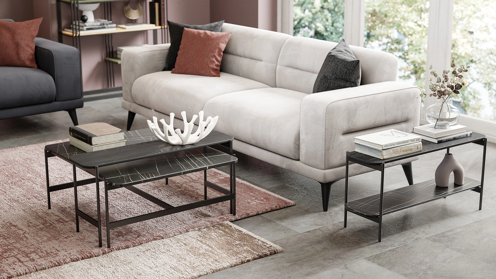 Noto yan sehpa, pratik kullanımıyla öne çıkıyor. Siyah ve yalın tarzı ile her dekorasyona kolayca uyum sağlayacak yan sehpayı dekoratif objelerinizi sergilemek ya da çay-kahve saatlerinde kullanmak için satın alabilirsiniz.