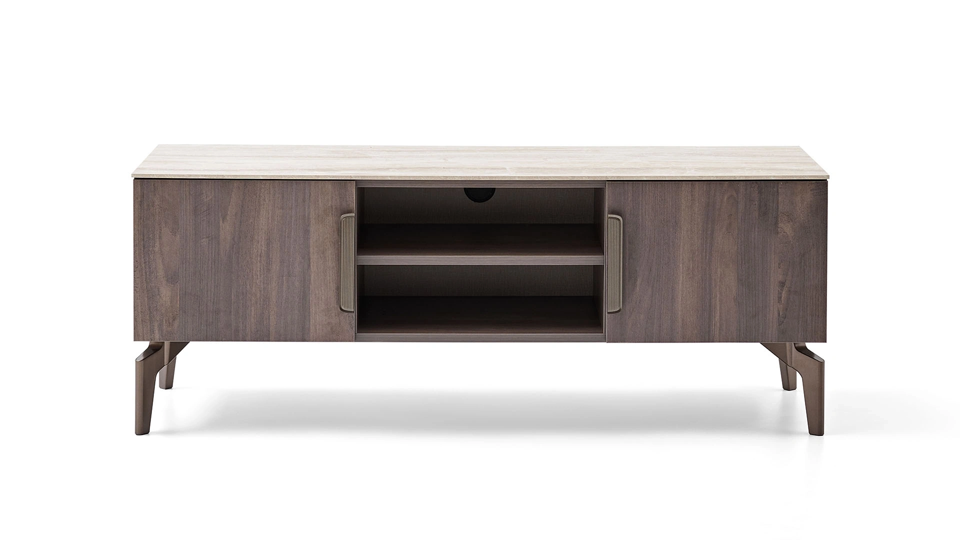 Ceviz ahşabın doğal, sıcak ve güçlü görünümünü yansıtan Piero TV ünitesinin alt modülü, kapalı depolama alanları ve geniş sergileme alanları ile mekanlarınızın dekorasyonunu tamamlıyor. Modern kulp ve ayak detayları ile öne çıkan alt modülü, Piero TV ünitesinin diğer modülleriyle birlikte satın alabilirsiniz.