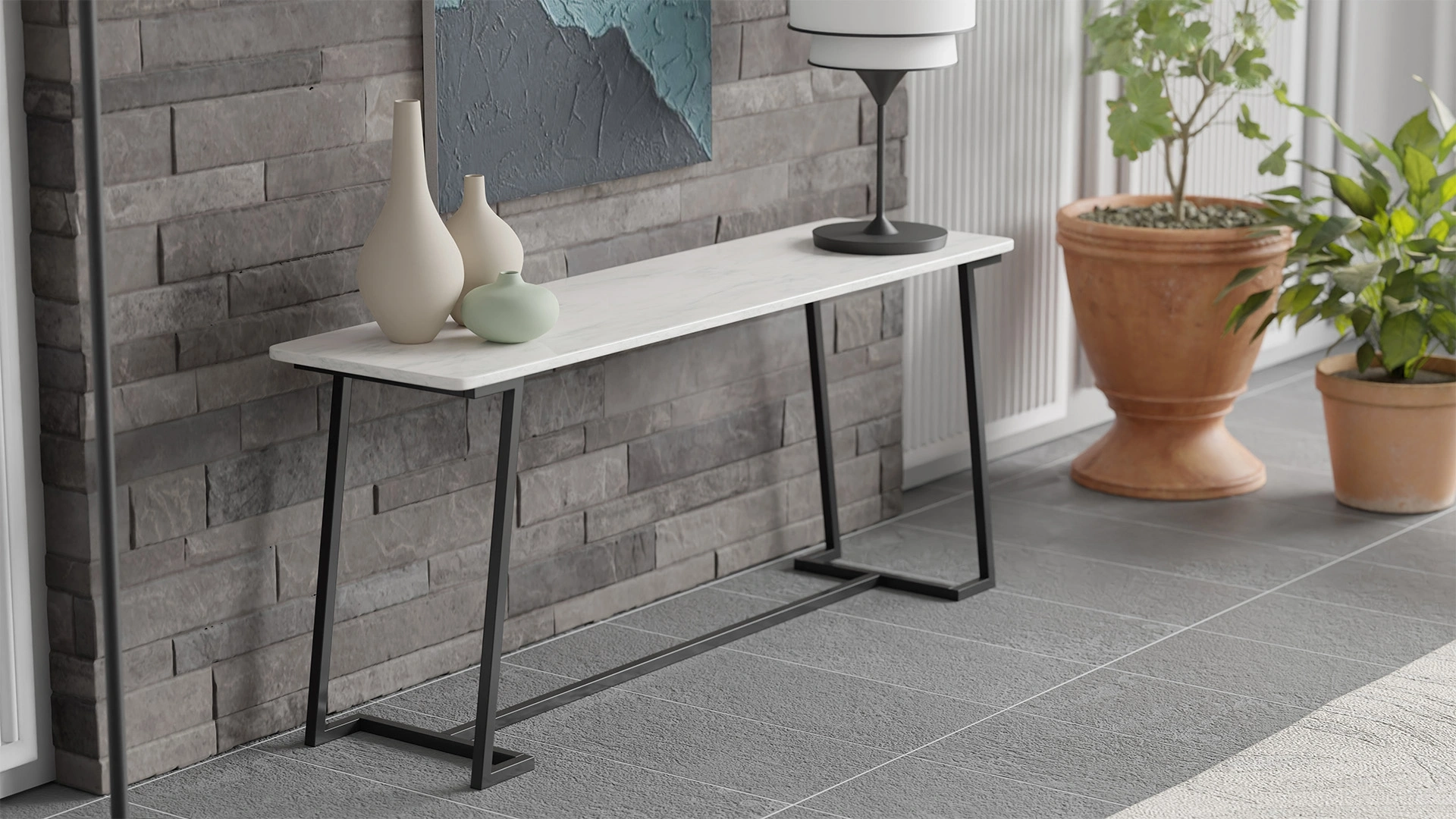 Ronda koltuk arkası modül, tamamlayıcı etkisi ile dekorasyonunuzun zenginleşmesine yardımcı oluyor. Mermer desenli üst yüzeyi, siyah, metal ayakları ile görünümünü tamamlayan Ronda koltuk arkası modülü hem koltuk arkasında hem de dresuar olarak kullanabilirsiniz.