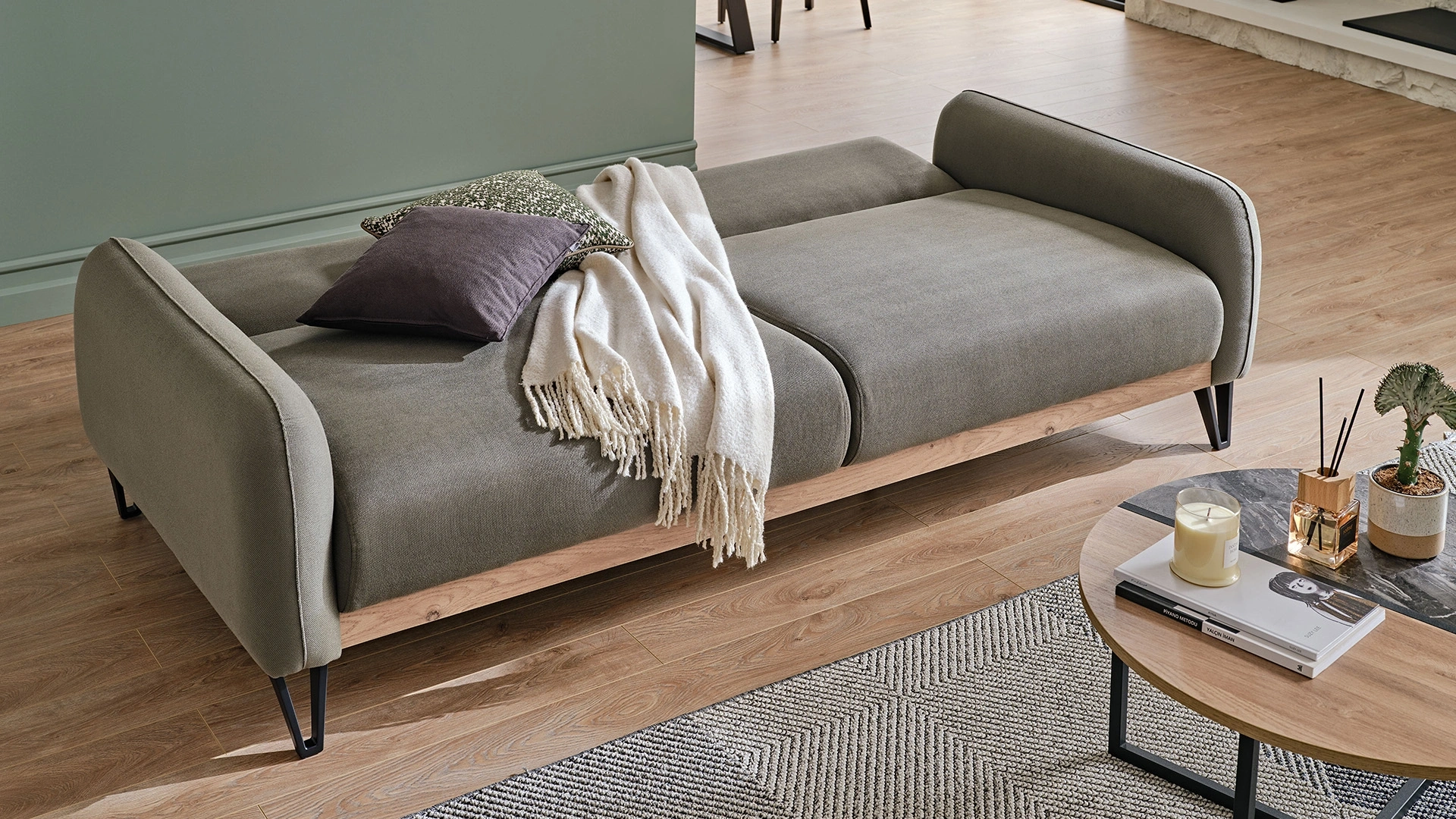 Solid üçlü koltuk, doğal ve zamansız tarzı ile öne çıkıyor. Rengi, kumaşı, dkişleri ile özel bir görünüm kazanan koltuk, click clack mekanizması ile yatak olabiliyor. Konforlu yapısı, spor ve şık tarzı ile öne çıkan koltuğu hemen şimdi satın alabilirsiniz.